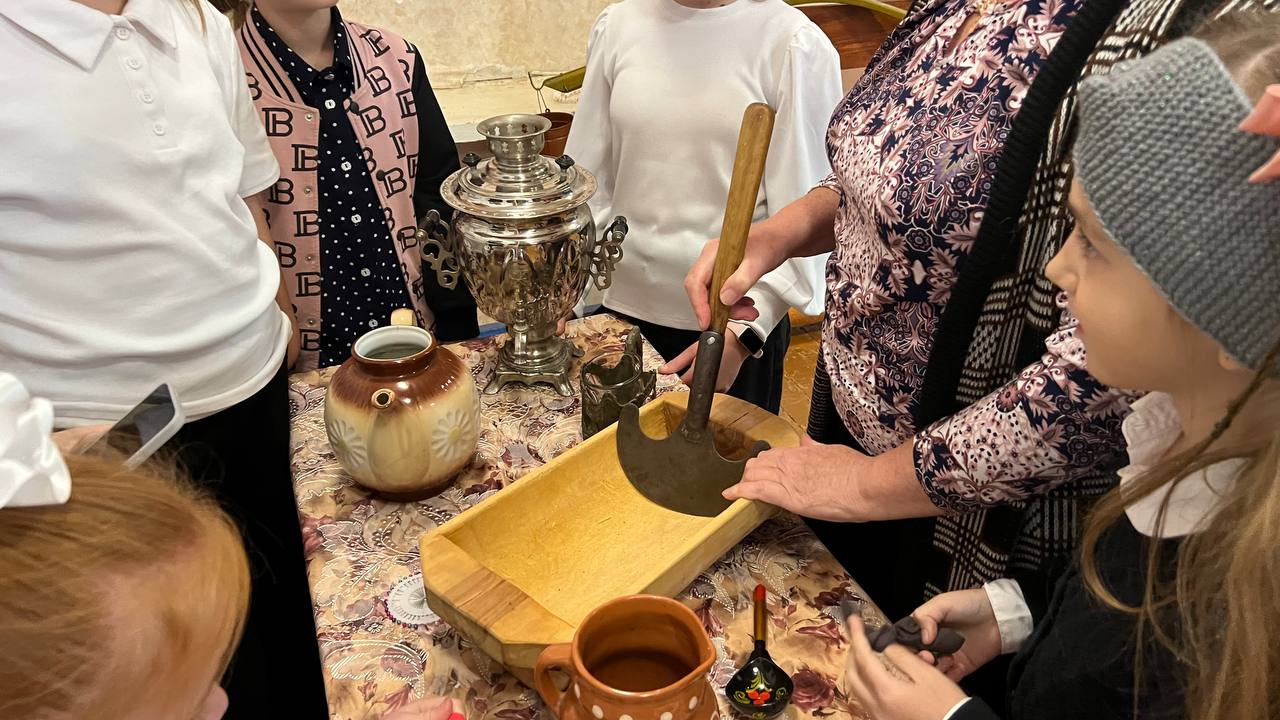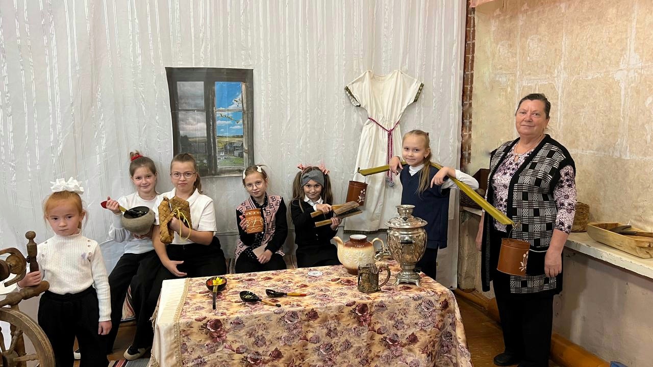 ✨🕊В избе, конечно, было много интересного. И печка, и лавки, и красный уголок – все говорило о быте русской семьи. Дети с удивлением рассматривали старинные предметы: прялки, ухваты, чугунки. Им рассказали, как готовили еду в печи, как пряли пряжу и ткали полотно.